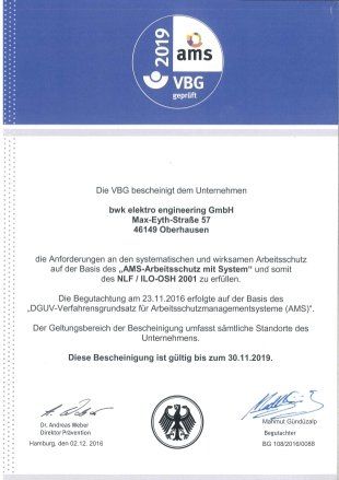 Mit Einführung des international anerkannten Arbeitsschutzmanagementsystems „ILO-OSH2001“ wurden die grundlegenden Arbeitsschutzrichtlinien systematisch im Unternehmen verankert und fest in den Arbeitsablauf der Mitarbeiter integriert. Das Arbeitsschutzmanagementsystem (ASMS) wurde am 16. September 2010 erfolgreich zertifiziert.